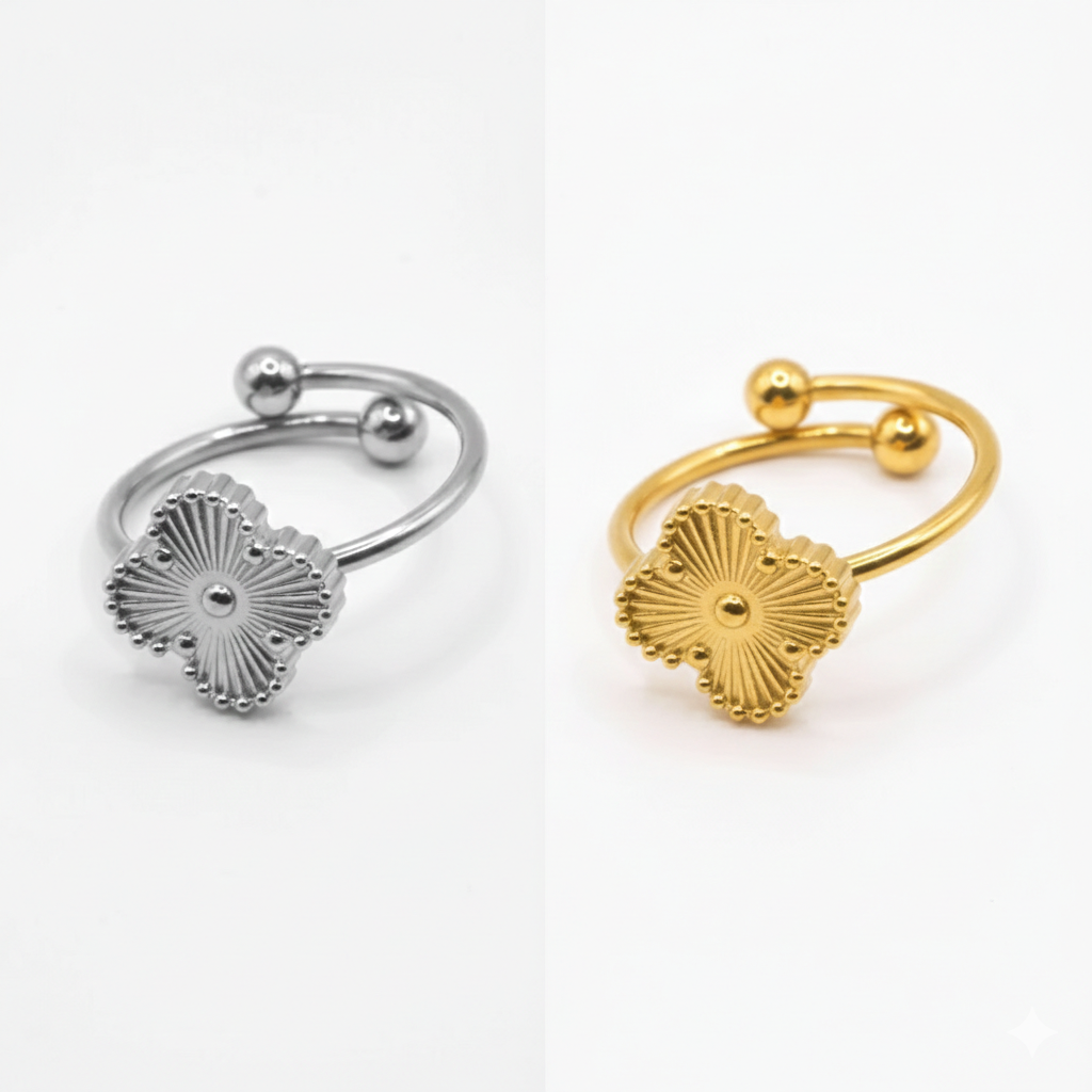 este anillo se adapta a cualquier look, ya sea para una ocasión especial o para el día a día. Su diseño único realza tu personalidad y te permite destacar con sofisticación.No dejes pasar la oportunidad de hacer de la anillo Trébol tu nuevo accesorio imprescindible. ¡Añádela a tu colección y brilla en cada momento!