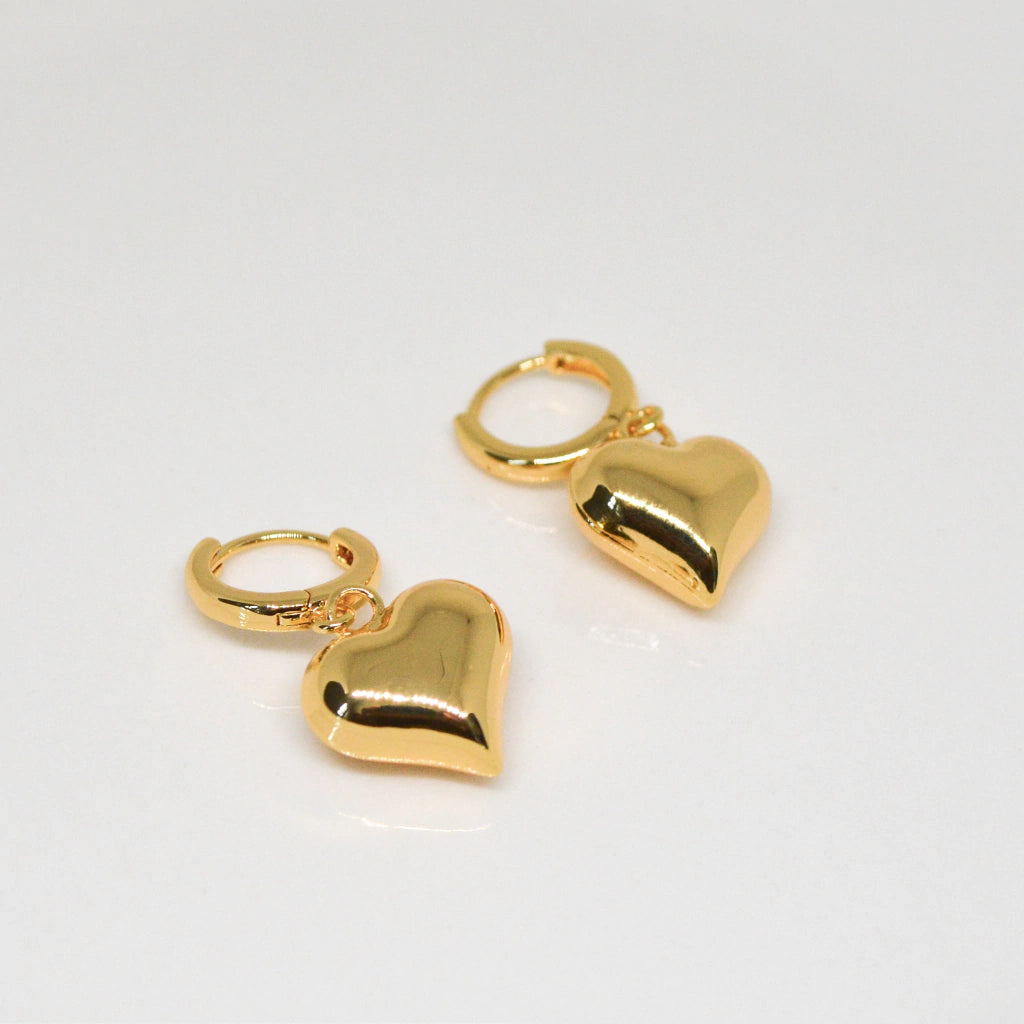 Hechos de chapa de oro con deslumbrantes piedras de zirconia, estos aretes representan un símbolo de amor y seguridad.