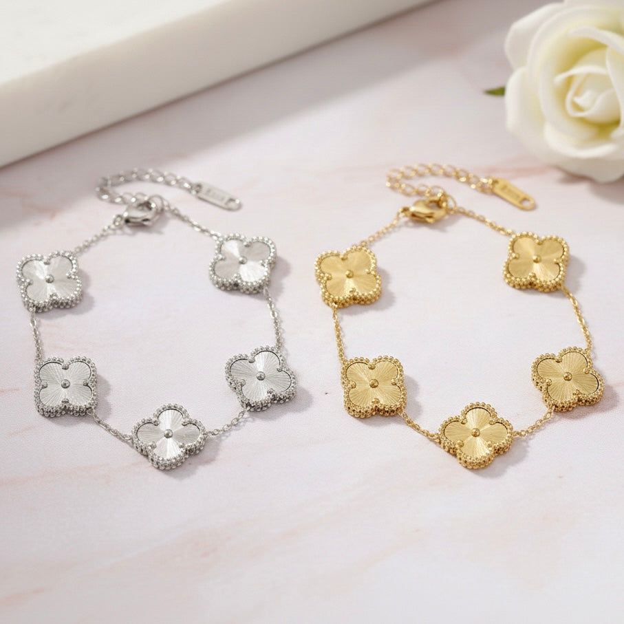 Presentamos la hermosa pulsera TREBÓL VAN un accesorio sutil y elegante que combina a la perfección estilo y versatilidad.