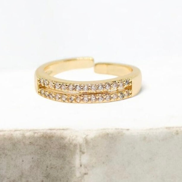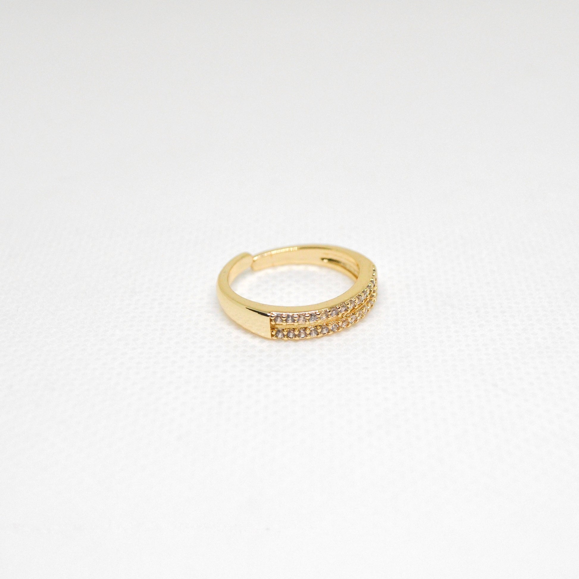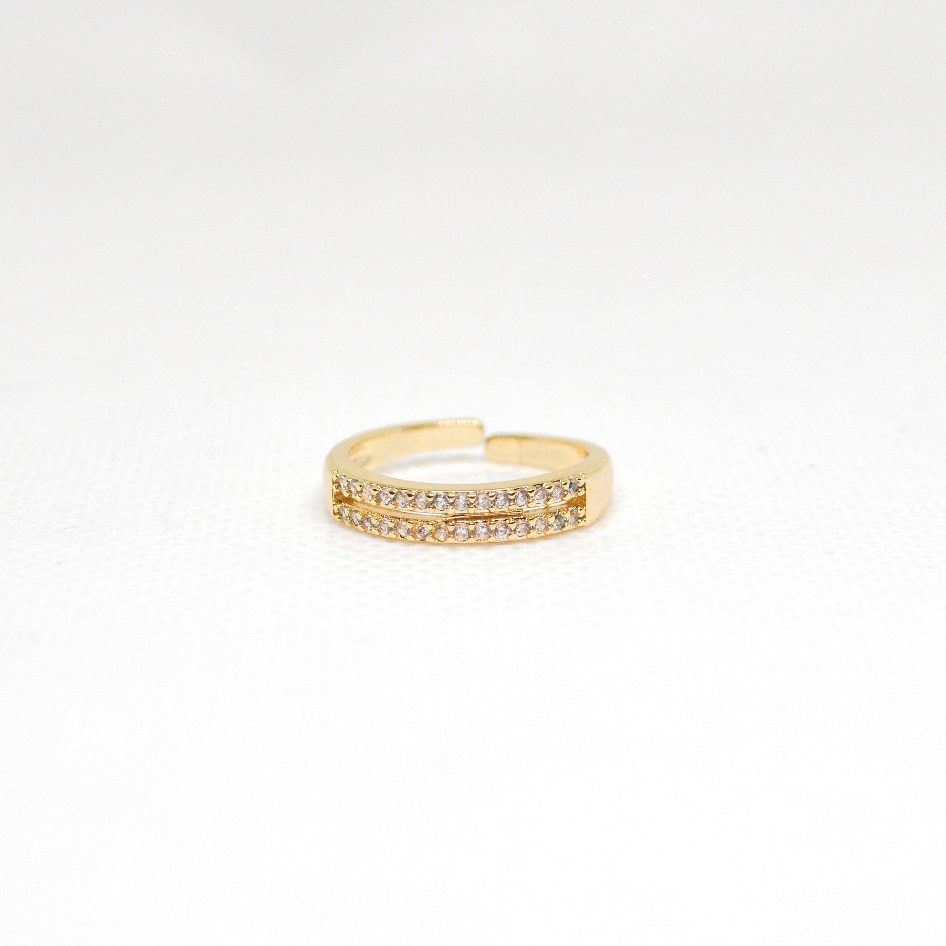 Sumérgete en la sutileza y el refinamiento con nuestro exquisito anillo Zara de chapa de oro 18k, adornado con una brillante zirconia blanca.