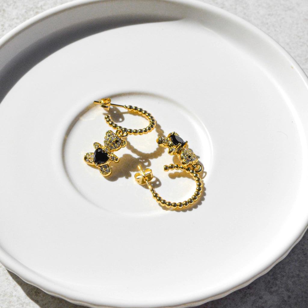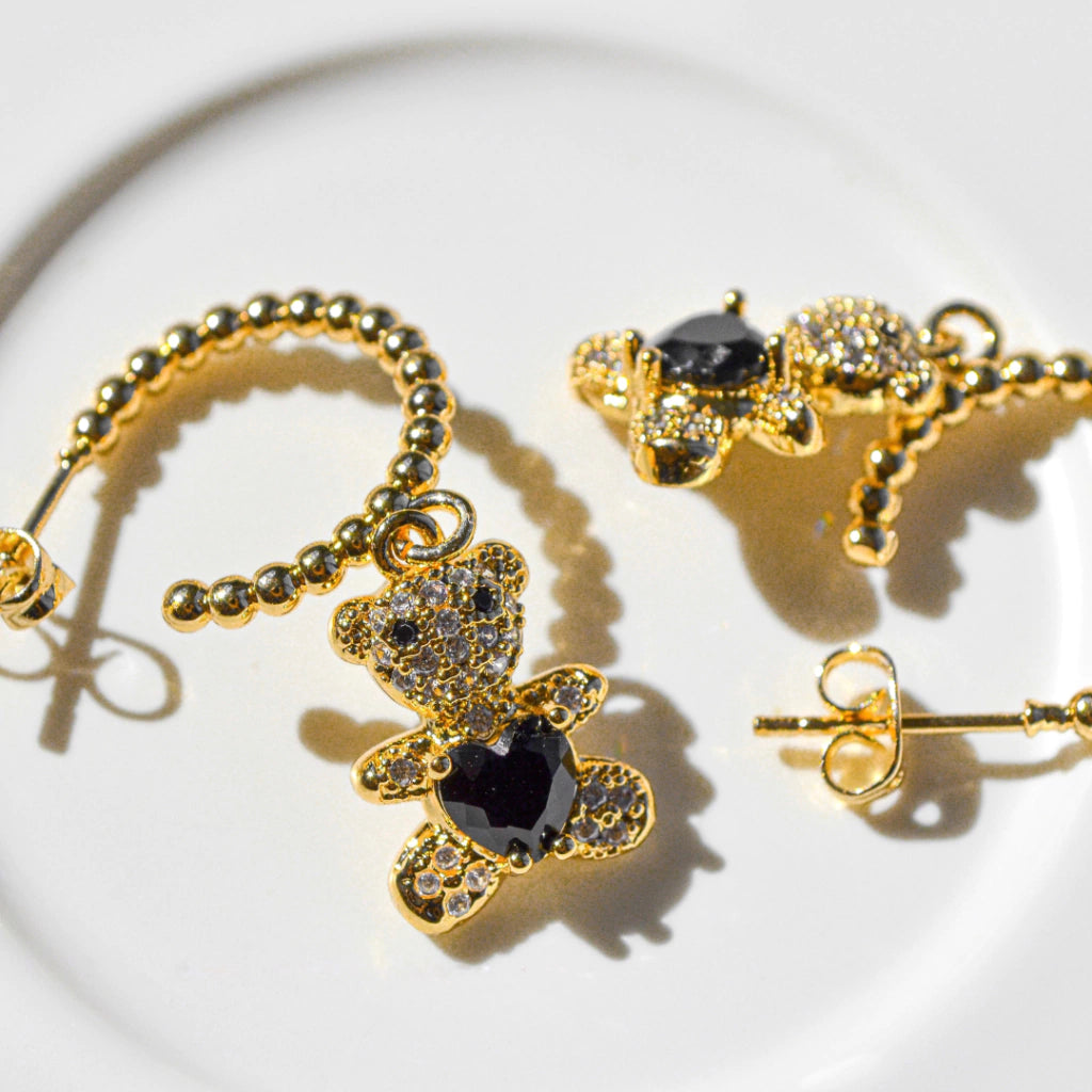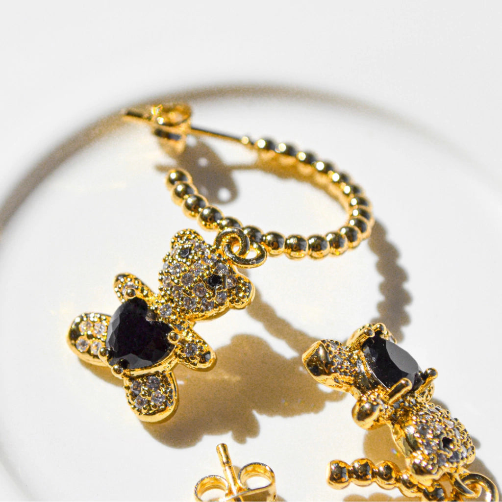 Estos aretes combinan la dulzura del osito con un toque de elegancia y estilo, ofreciendo un contraste llamativo y sofisticado.