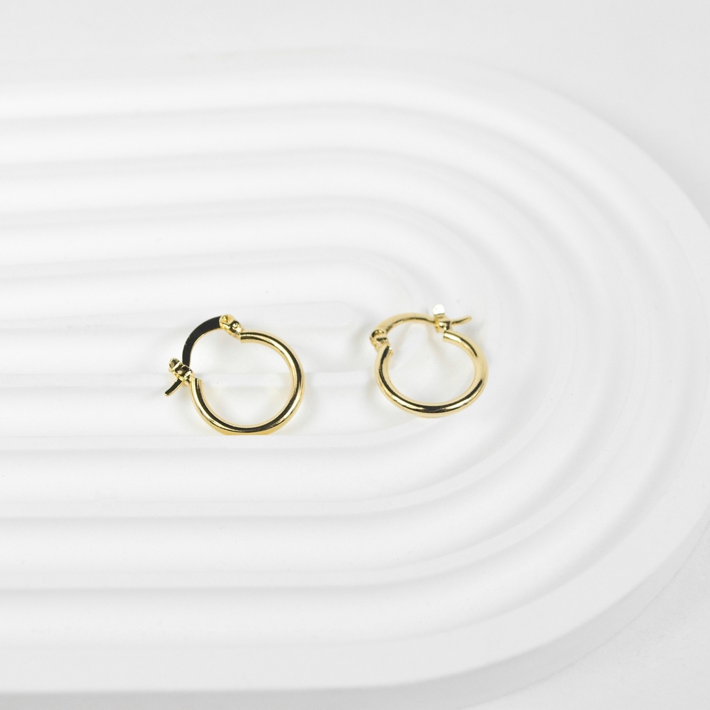 Estos pequeños aretes, elaborados con exquisita chapa de oro 18k, destacan por su diseño minimalista y su artesanía meticulosa.